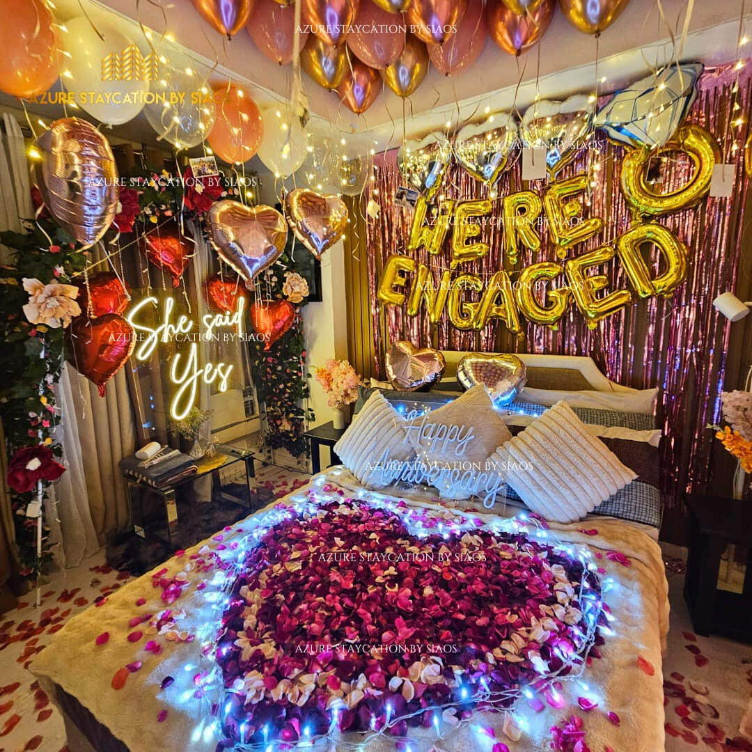 Experience the ultimate proposal setup with our full-room decorations, designed to create the perfect "happily ever after" moment for the love of your life. Let us transform your staycation into a magical and unforgettable celebration of love!